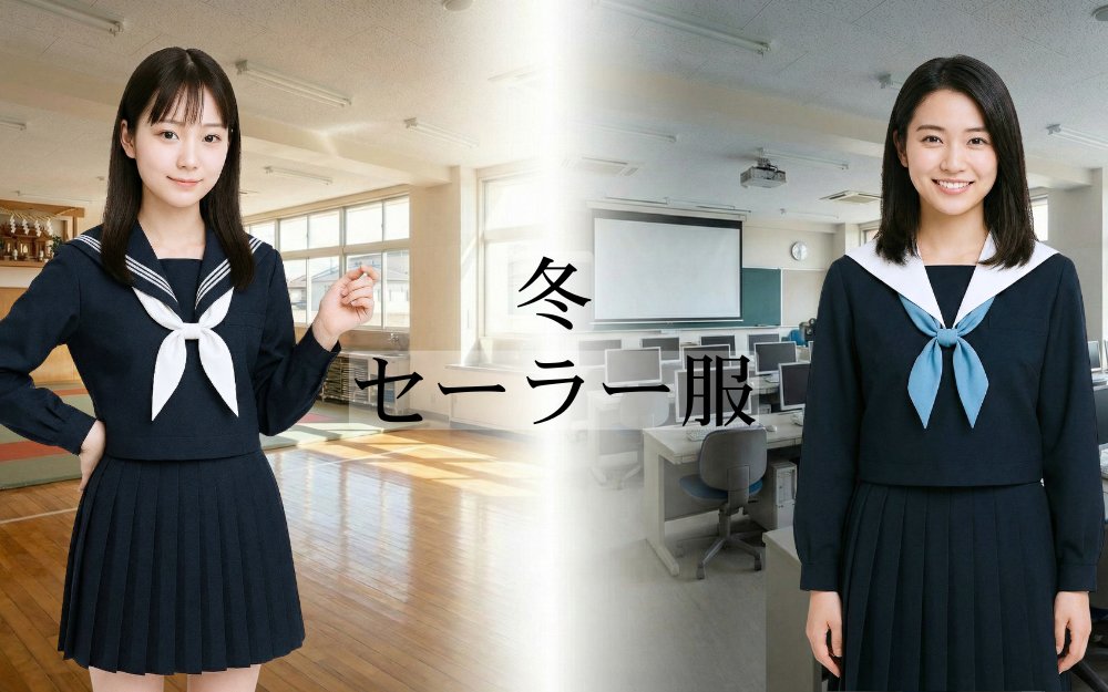 冬濃紺セーラー服/濃紺白3本ライン襟/横チャック