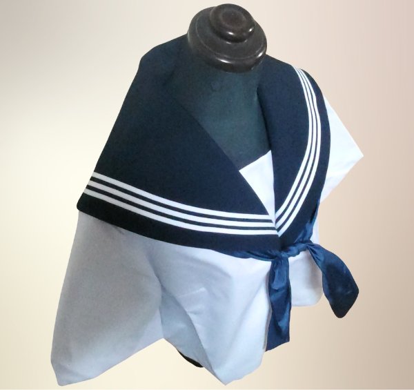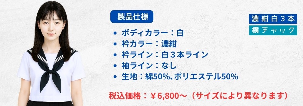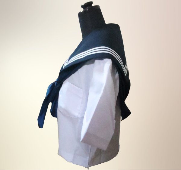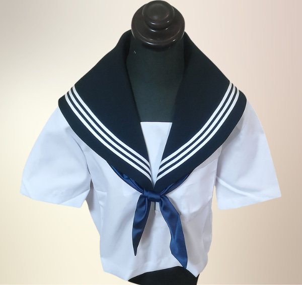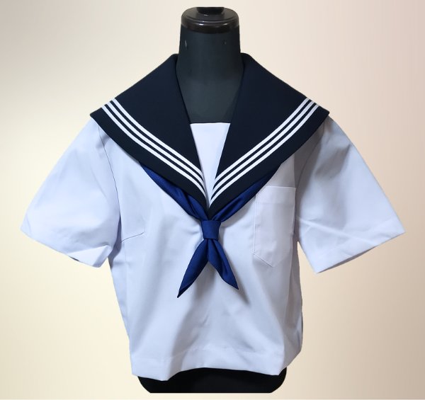 夏半袖セーラー服/濃紺白3本ライン襟/横チャック