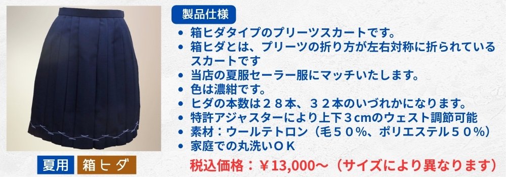 夏用濃紺プリーツスカート/箱ヒダ 商品番号:STN1H 夏用濃紺プリーツスカート/箱ヒダ ウェストサイズ 58cm 60cm 63cm 66cm 69cm 72cm 75cm 78cm 82cm +4,000円 85cm +4,000円 スカート丈 選択してください 35cm 40cm 45cm 50cm 55cm 60cm 在庫状態:在庫有り ¥14,800 只今お取扱い出来ません 数量